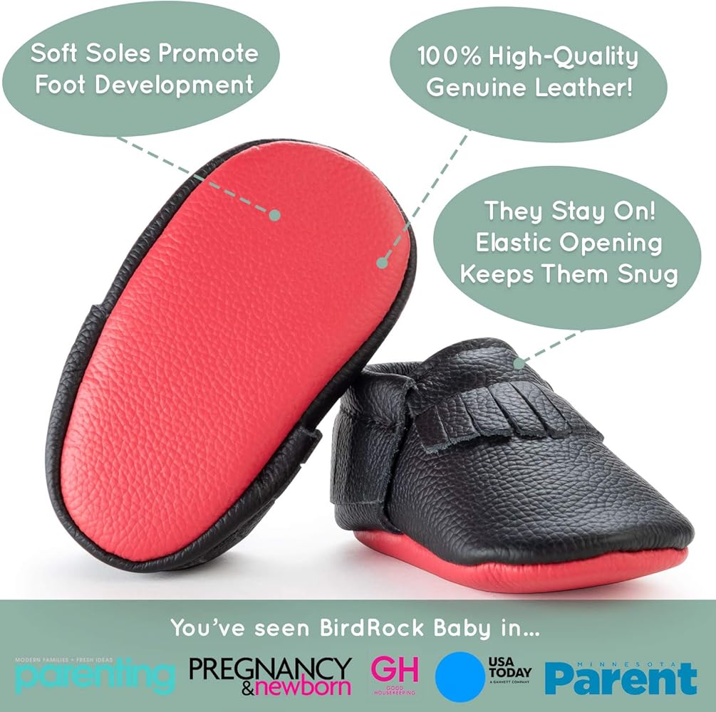 Amazon Com Birdrock Baby Moccasins 30 Styles For Boys Girls Every Pair Feeds A Child Us 6 5 Black And Red Oxford Loafer